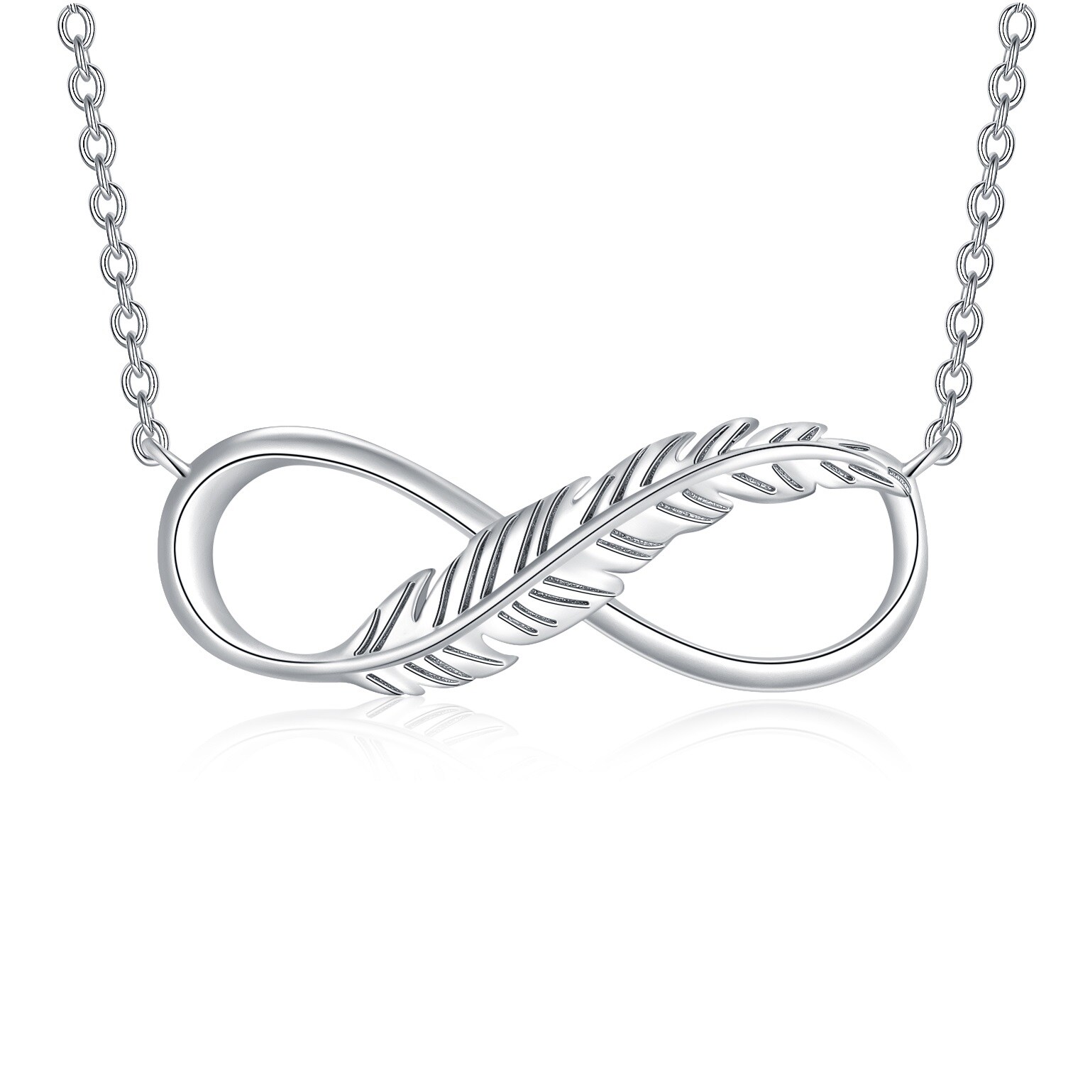 Infinity Feather Necklace 925 Sterling Silver Necklace For Women